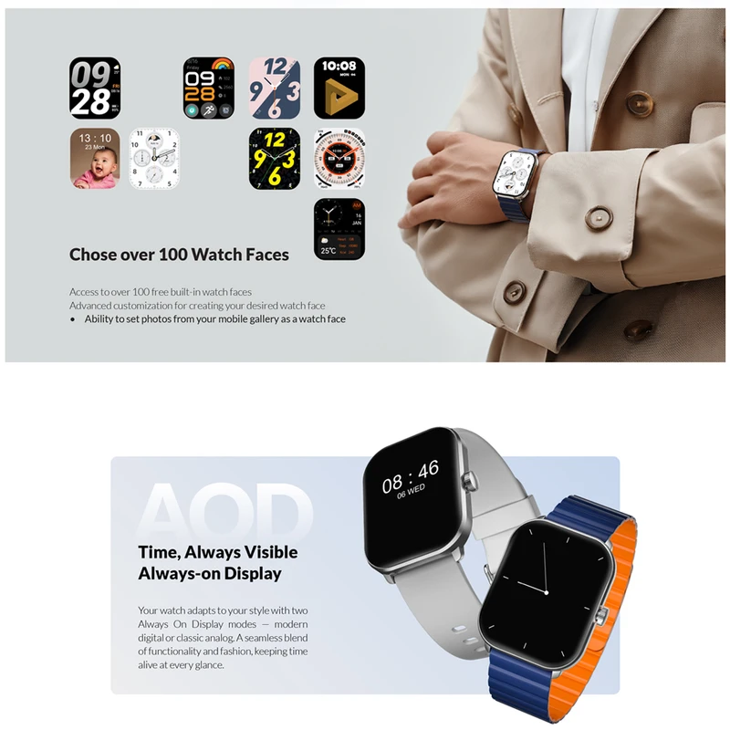 بندهای سیلیکونی و مغناطیسی قابل تعویض با عرض ۲۲ میلیمتر، راحتی و تنوع ظاهری بالایی برای کاربران فراهم میکنند.